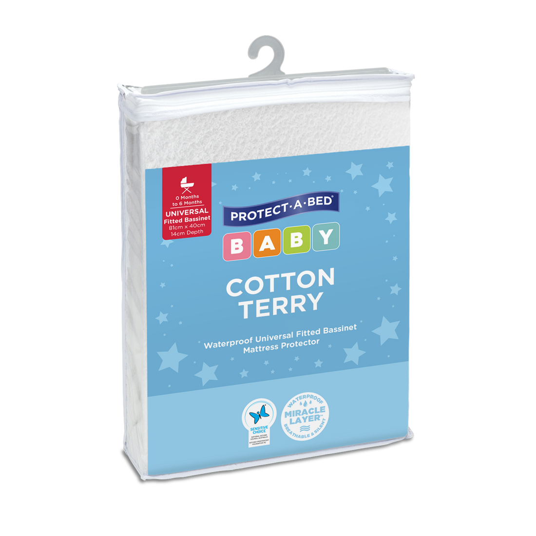 Cotton Terry Fitted Waterproof Bassinet Mattress Protector Expertly crafted with a soft cotton terry surface...