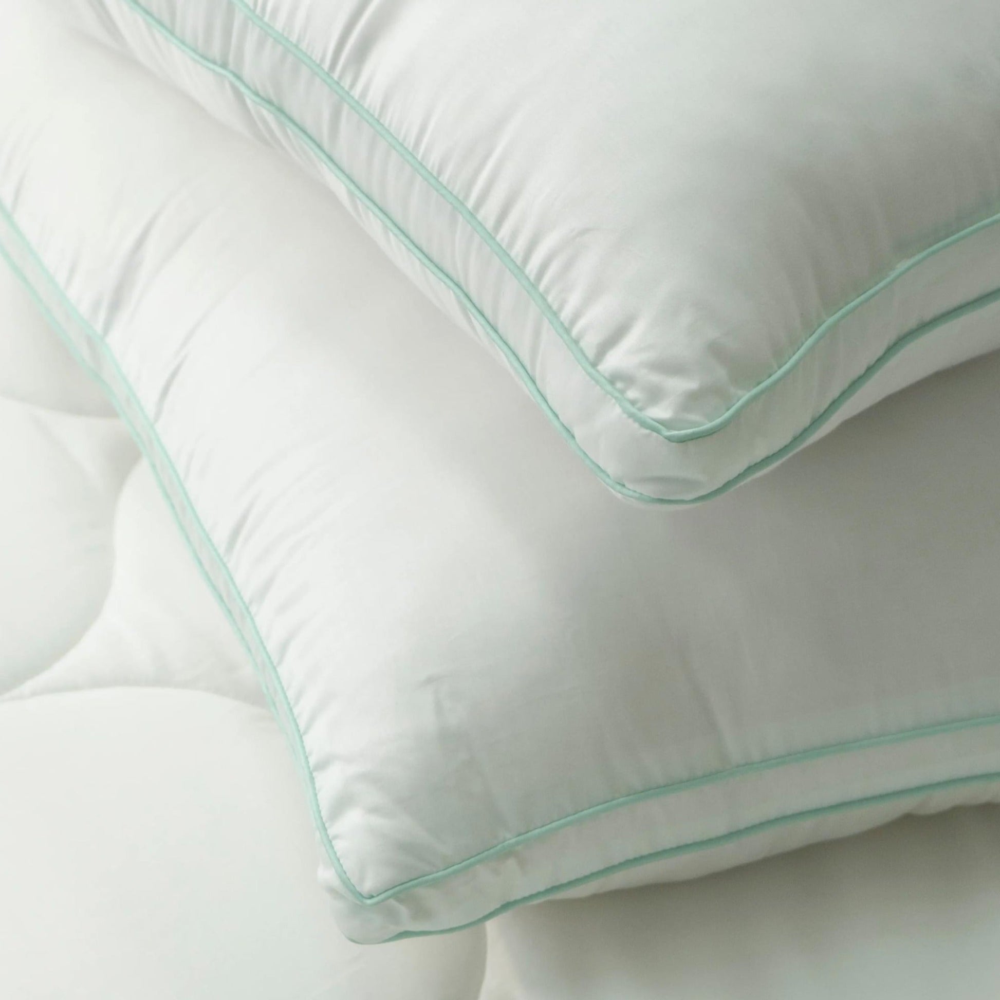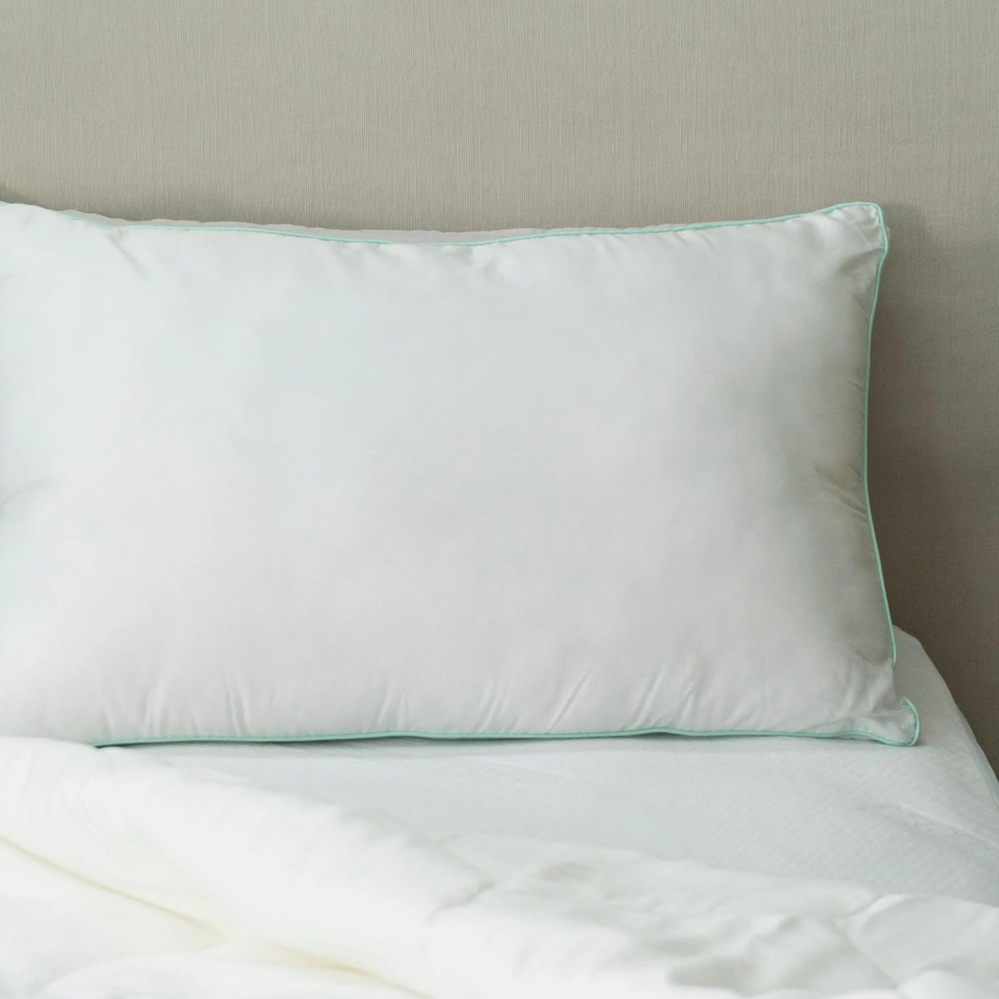 COVER: 100% Tencel™, with a smooth sateen finish and green piping | FILLING: 10% Tencel™, 30% Ingeo, 60% Polyester | ANTIMICROBIAL TREATMENT: Fresche®