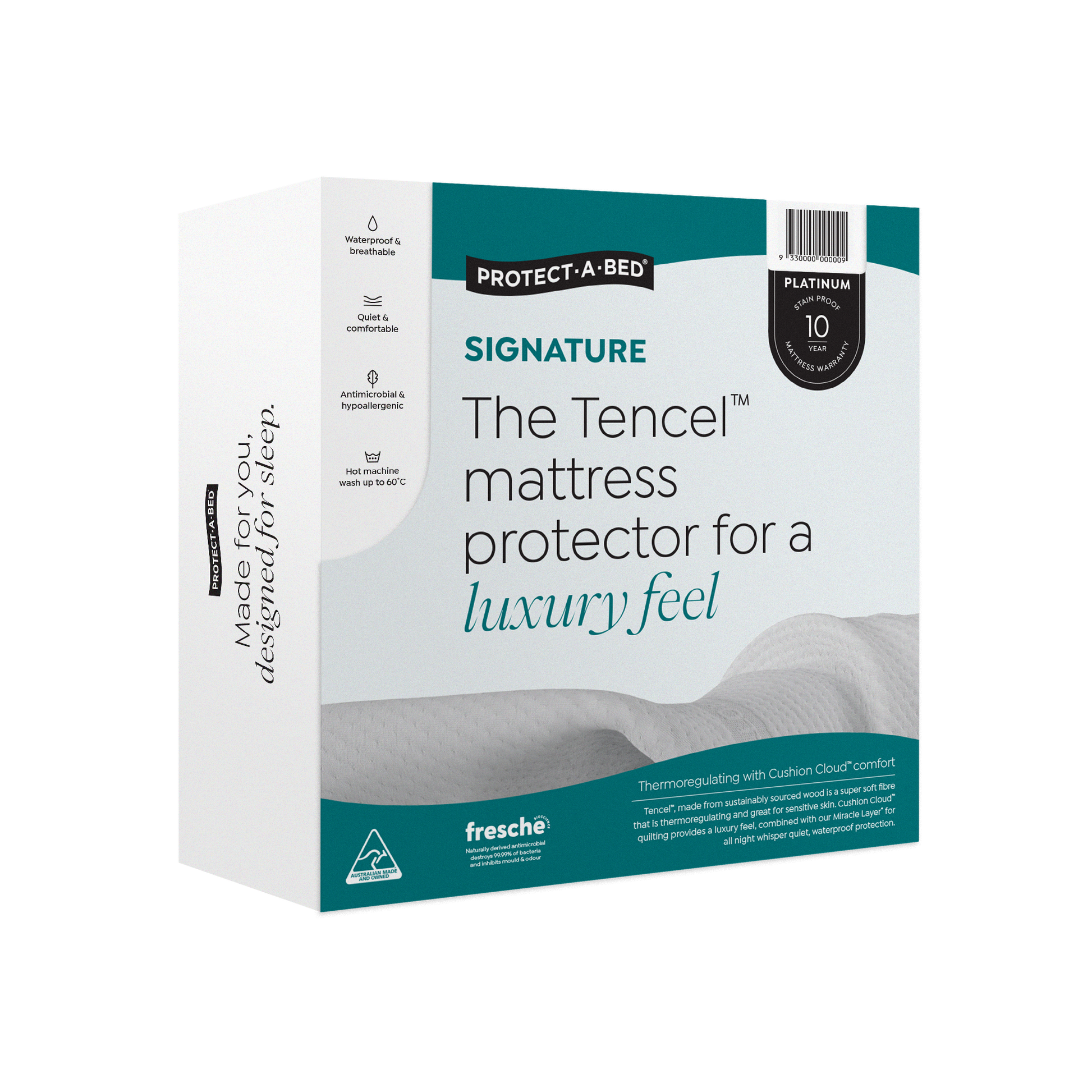 This protector is crafted to provide unparalleled comfort and protection for you and your family, with a sustainably sourced Tencel sleep surface that wicks moisture to ensure you stay cool in summer and cosy in winter, combined with the plush luxury feel from the Cushion Cloud™.