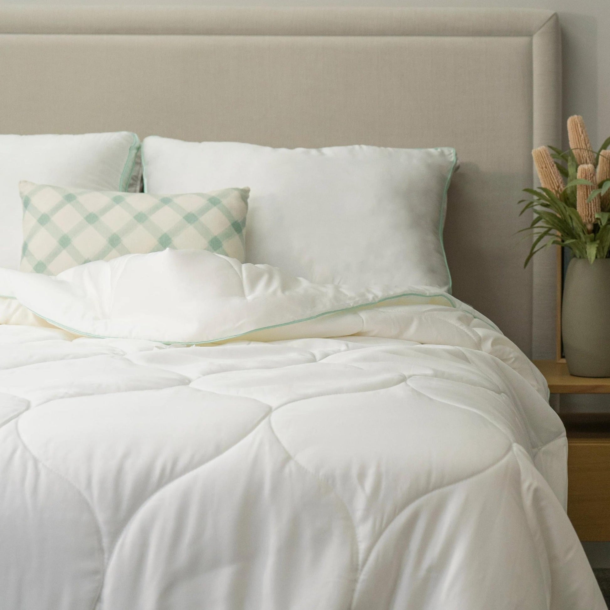 Quilted with a luxurious Tencel™ Sateen cover, these Signature Tencel™ quilts are filled with 100% Tencel™ fibre. They are thermoregulating, breathable, and lightweight, ensuring a comfortable night’s sleep all year round.