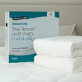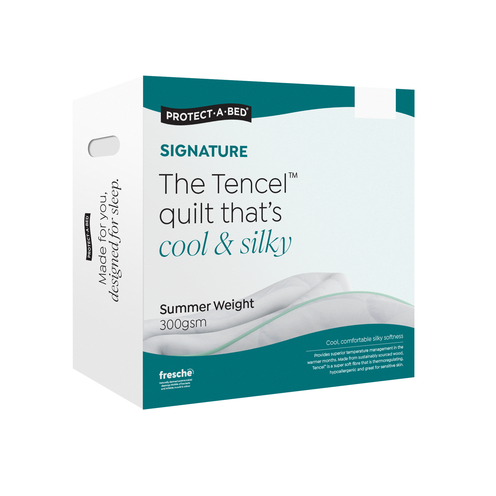 Quilted with a luxurious Tencel™ Sateen cover, these Signature Tencel™ quilts are filled with 100% Tencel™ fibre. They are thermoregulating, breathable, and lightweight, ensuring a comfortable night’s sleep all year round.