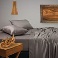 This sheet set is crafted from Tencel, a sustainably sourced material that is soft and smooth with a beautiful sheen. It is moisture-wicking and thermoregulating, keeping you cool in summer and warm in winter.